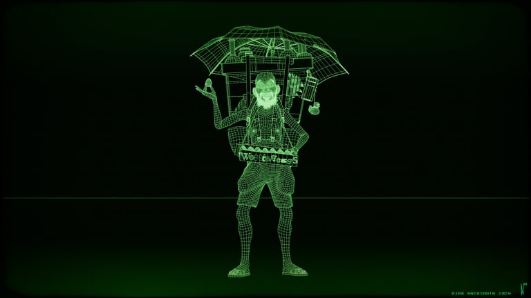 I had the idea for this character 10 years ago and drew the concept back then. Five years later, just before the start of the corona pandemic, I started to realise this guy in 3D. It was a side project for several years. I had a wealth of ideas about this character and where his journey would take him. I would have loved to animate him, but unfortunately I don't have the resources to do it satisfactorily.