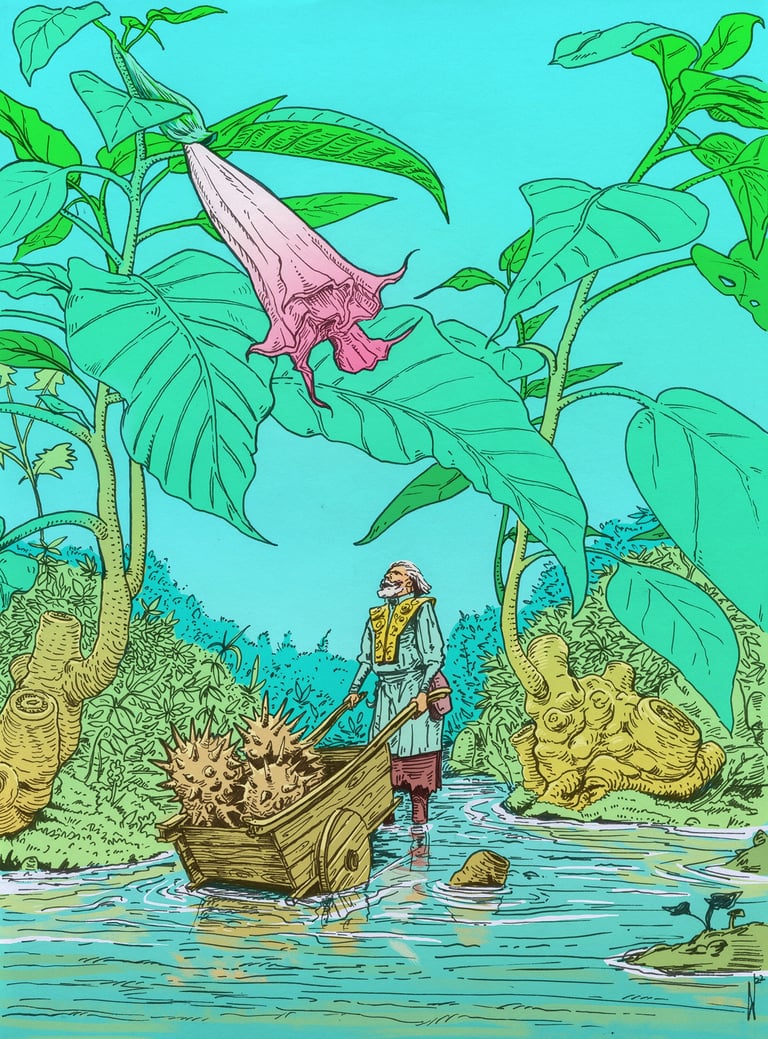 Most of my personal work took place in fantasy or science fiction realms. I like dark stuff but I also love vibrant colors.