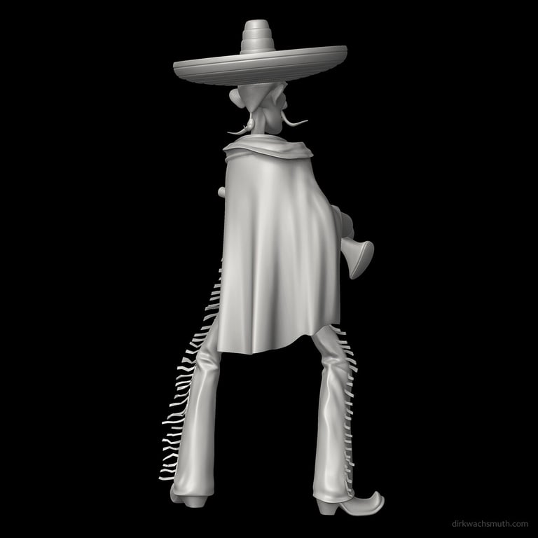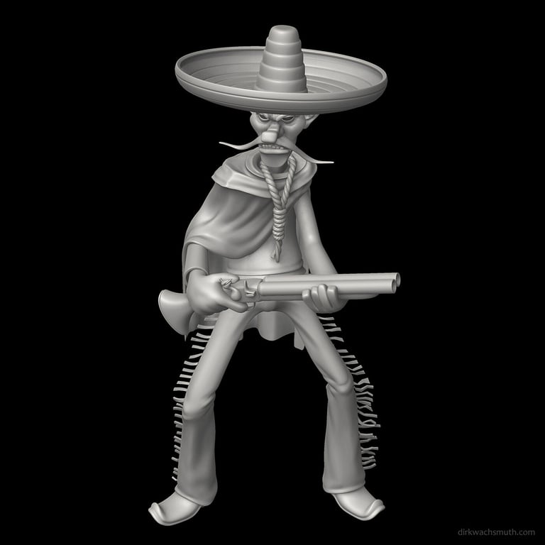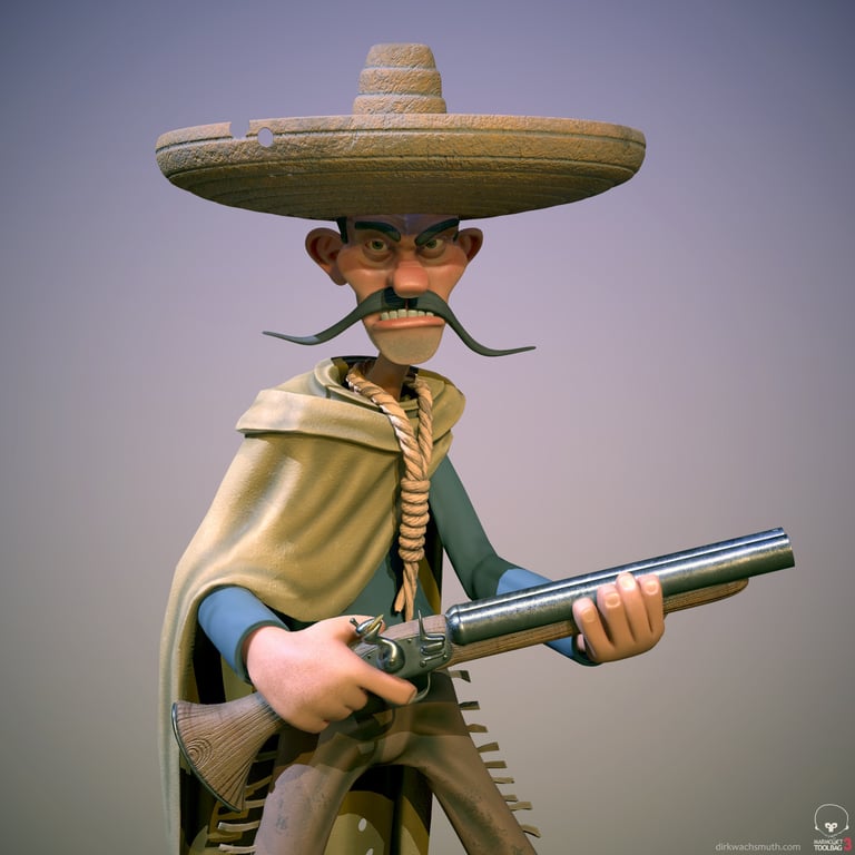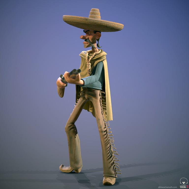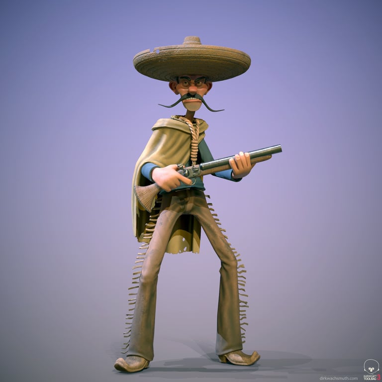 I made a stylized 3D character based on a concept I drew for the Wild West Challenge.