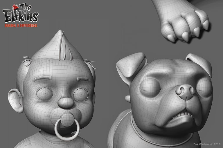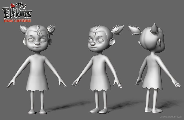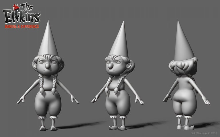 In 2017 I had the pleasure to work on the animated feature film 'The Elfkins - Baking A Difference' with Chimney Group for Akkord Film. I have modelled a whole bunch of the characters based on the concepts.