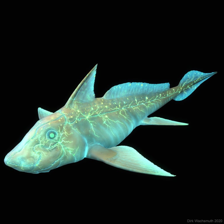 The design of the emission textures for the bioluminescence glowing was a particular challenge here, as they significantly determine the character of the creatures in the game. The bioluminescence of the animals is greatly exaggerated, which results from the plot. It is possible to perceive the plasticity and details of the surfaces in VR by pointing the torch.