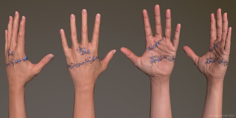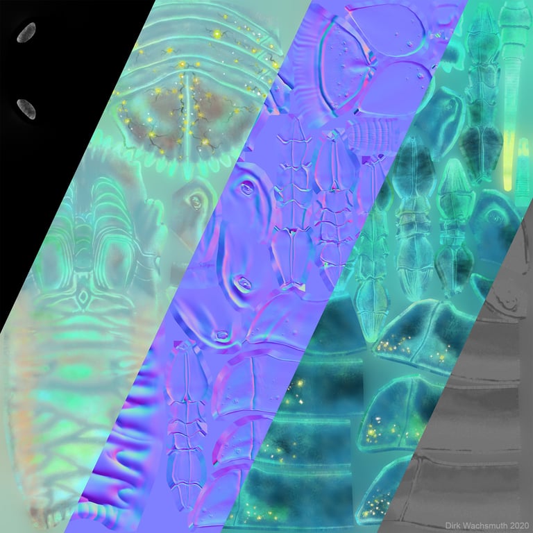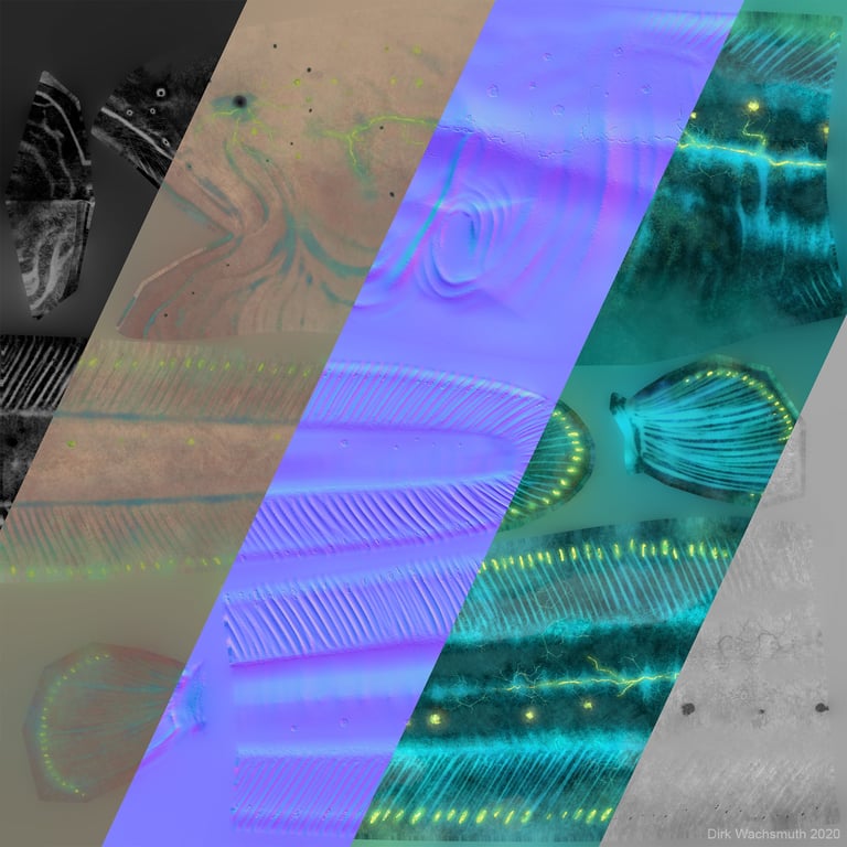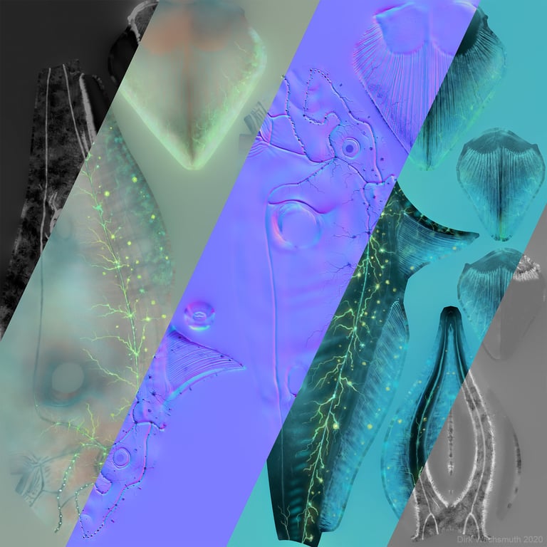 In 2020 I had the pleasure to work on Biolum VR experience as 3D Creature Artist and Texture Artist with the great team of Reynard Films, Prefrontal Cortex and Iko Studio. It's a Franco-German co-production. Here are some other assets I made for the project. In addition to most of the animals, I also made the hands that can be seen later in the game, as well as some plants and corals for the environment. It's just a selection.