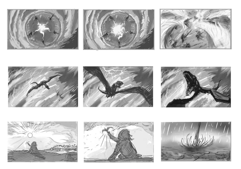 In 2024 I had the pleasure to work again on a Magic the Gathering Trailer. I drew the storyboard for the official trailer of Tarkir: Dragonstorm